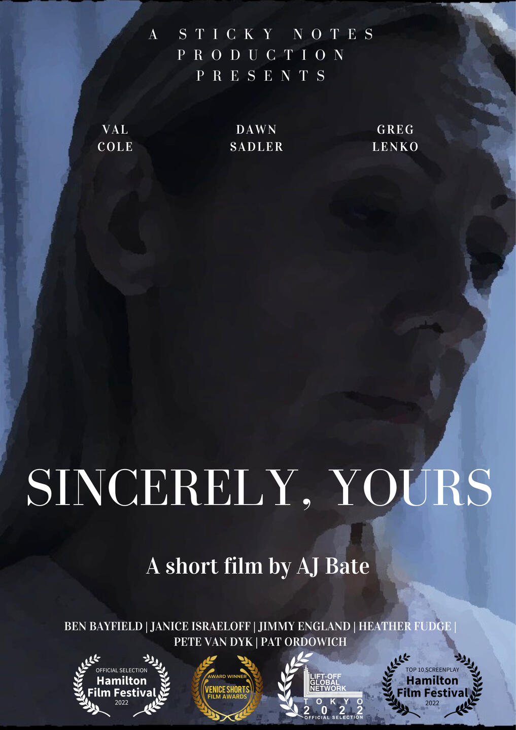 "Sincerely, Yours" has been selected in four different film festivals across 3 different countries and has won "Best Indie Short FIlm" at the Venice Short FIlm Festival.